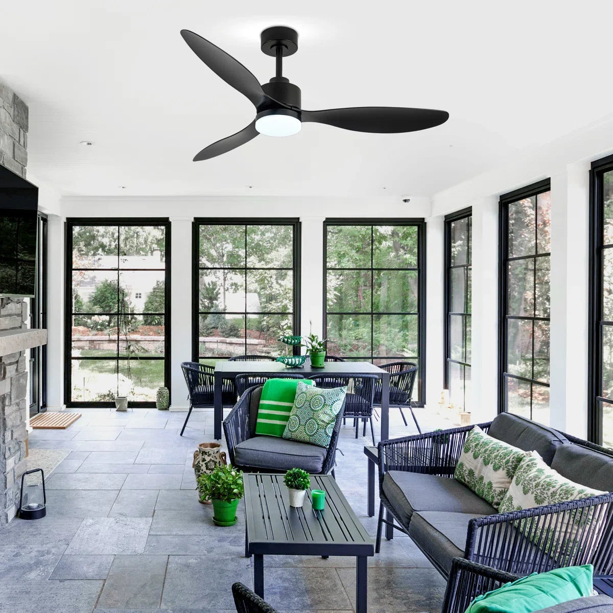 Loritta 52'' 3 - Blade Large Indooor Ceiling Fan With Light Kit and Remote, 3 LED Colors, 6 Speed Noiseless DC Motor, Timer