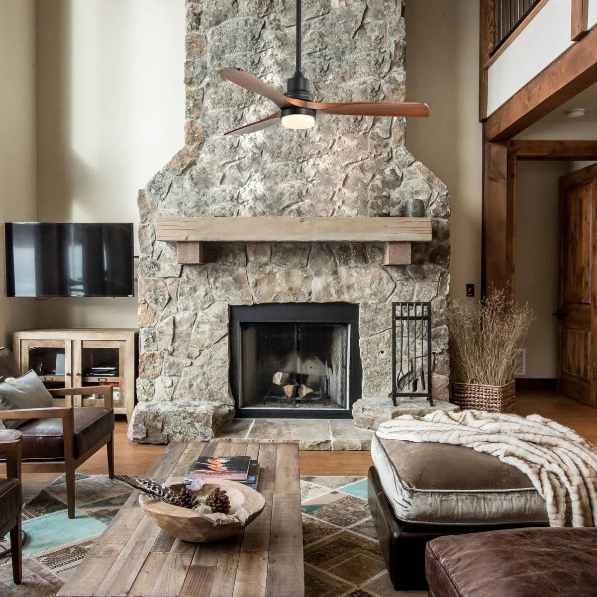 The 52" 3-blade modern ceiling fan with remote and light will add much character to your space. It's made from metal and has 3 solid wood blades, 5", 10", and 24" downrods. With a 35W DC reversible motor, this fan has a super quiet performance, no need to endure the noise while saving energy both in the summers and winters. Independently can control the light and fan by remote control. Also, adjusting the brightness and temperature of light and wind speed is easy. The integrated 18W LED light projects 1620 lumens, 3000K warm white, 4000K neutral white, and 6000K cold white. This LED light can be replaced. If the product has quality problems, please feel free to contact us!